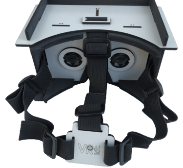The VR Kit comes in a suitcase-style box containing all necessary parts including two biconvex lenses, a manual for assembly, stickers for personalization